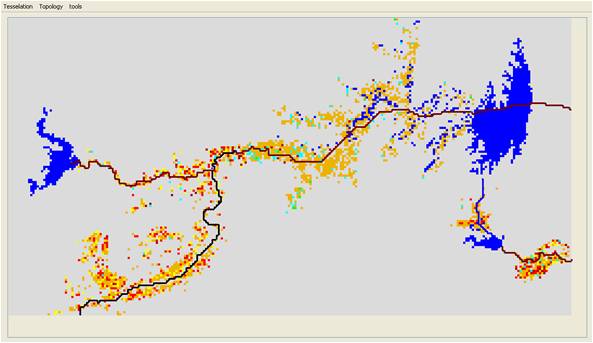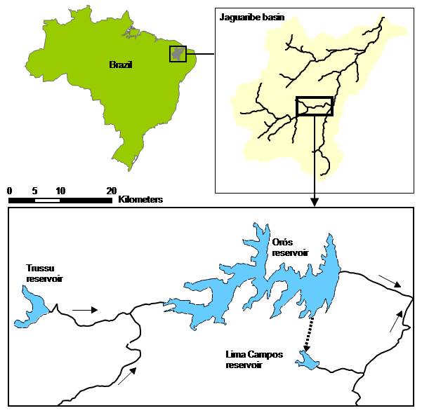 may exist at and between different levels on the river basin scale: A first application of the model has been implemented using survey data on farmers' preferred land use in case of different water availability situations at the sub basin level of the Jaguaribe basin in Brazil (figure 1; figure 2; Van Oel, 2009; Van Oel et al., 2010). Currently we are working on modifying the model for studying basin closure and the effects of decentralization of water allocation management at the basin level. Model output includes water availability and water use at levels ranging