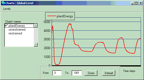 plant energy level fluctuations simulated on 200 time steps (1 curve