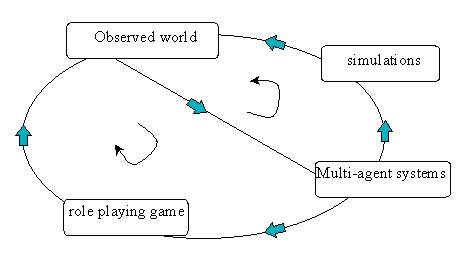 Some models developed with Cormas or MAS are used as role-playing games. The conversion of the model into the game is made possible by a certain analogy: the agents of the model correspond to the actors of the game, the rules of the model are similar to the roles of the game and the simulation run correspond to the game session. Works on this subject have in common to propose a passage in both directions between the model and the game. Model and game are complementary and grow richer mutually. When the actors involved in the management of a space or a resource play, they bring modifications to the model. The approach for building models include generally a diagnosis, a formalization and a validation. Then, the models are used as multi-agent system or as role-playing game, for training or for negotiating. After a first use, the models are modified according to the behavior of the real actors during the game.