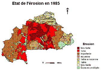 Le suivi de la qualité des terres correpond à une demande de décideurs désireux de connaître l'évolution temporelle du milieu agricole et particulièrement de ses composantes environnementales. La perte en terre, la baisse de fertilité des sols, leur dégradation tant physique que chimique, le stock de carbone font partie des grands problèmes actuels. Ces thèmes concernent de nombreux pays de l'Afrique sud saharienne et particulièrement le Burkina Faso, pays enclavé aux conditions climatiques difficiles; ce suivi nécessite l'établissement d'indices spécifiques. La démarche utilisée vise à modéliser de façon spatiale ces indices ; cela nécessite des fonds de cartes très variés et des données sur le milieu physique et le milieu humain au niveau de l'ensemble du territoire Burkinabè. Ceci est réalisable à l'aide de logiciels de type systèmes d'information géographique (SIG). Néanmoins, la nouvelle version de Cormas a été utilisée. Elle permet non seulement de travailler en mode vectoriel à partir des fichiers "exports" de MAPINFO mais aussi de disposer de possibilités de modélisation bien supérieures à celles des SIG. Un premier travail a été réalisé sous le logiciel de SIG, sur le thème de suivi de l'érosion pluviale et hydrique au Burkina Faso, il a été transposé aisément sous Cormas. Une simulation dans le temps basée sur l'évolution théorique de la population et du cheptel fonctionne. Elle permet de tester les paramètres pris en compte.
