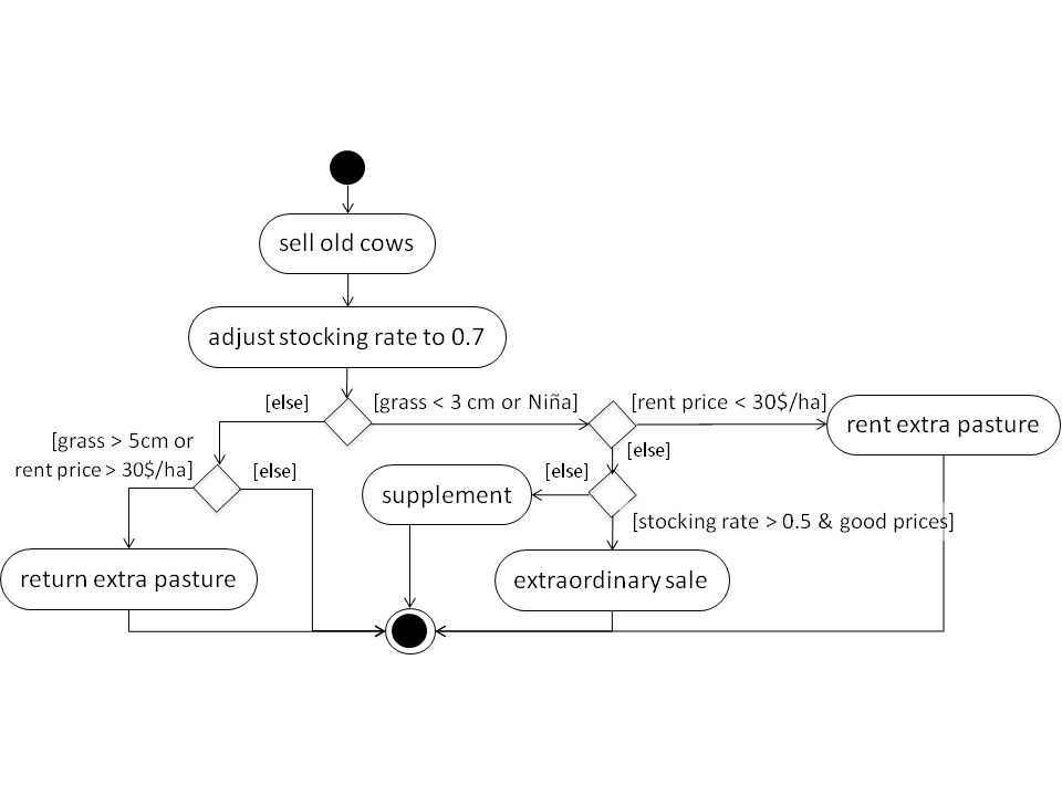 Y ahora, un ejemplo de diagrama de actividad del "Productor Pasto" (o de "Productor CC") y sus decisiones durante el invierno: